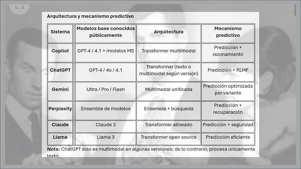 Arquitectura y mecanismo predictivo de las principales IAs (2024–2025) (Comparación técnica)